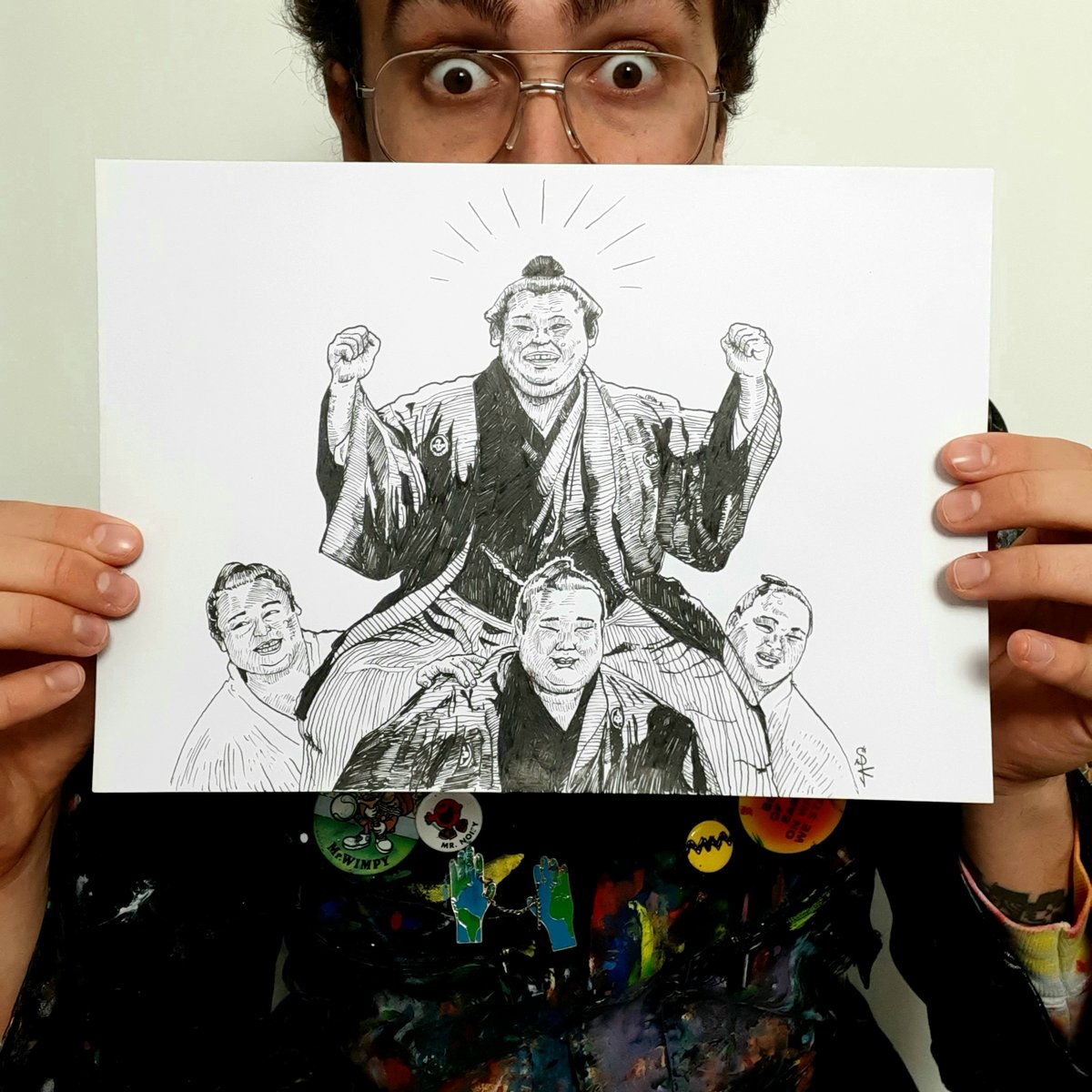 Drawing of Yokozuna Onosato on his big promotion day! Buying options- Original ink drawing- You will also receive the original pencil sketch -£60 or High quality a4 art print- printed on demand -£25